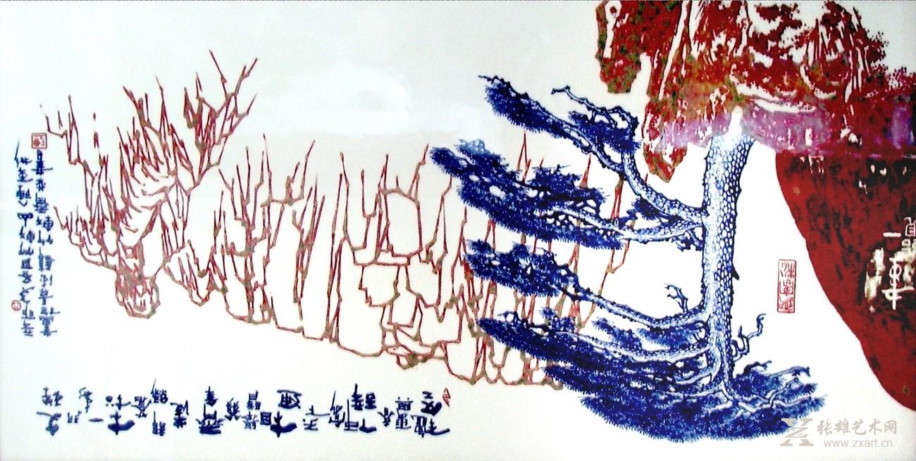三尺六釉里红《迎客松》瓷板