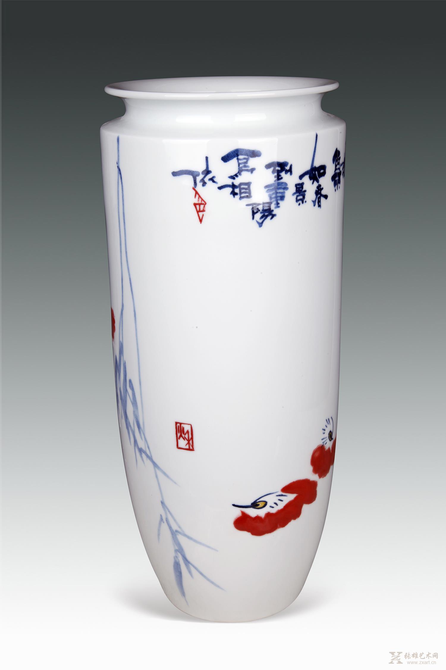青花颜色釉《两相依》瓷瓶