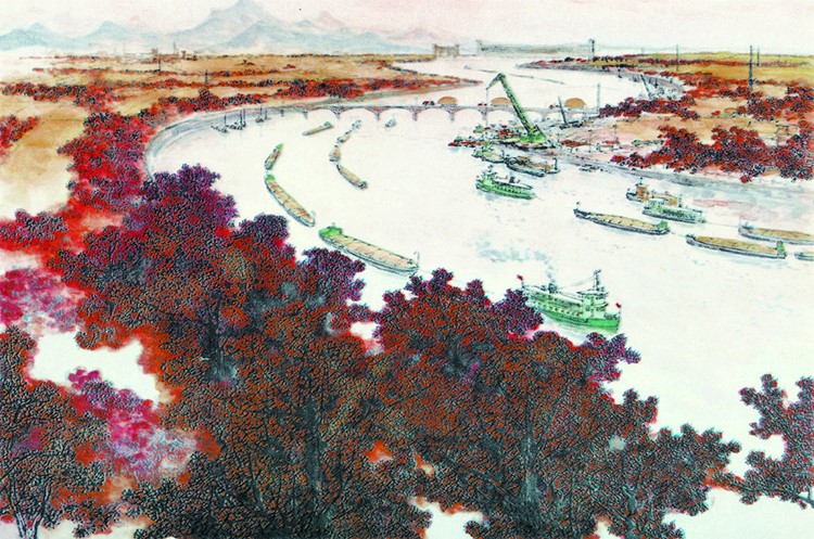 繁忙的淮河运输