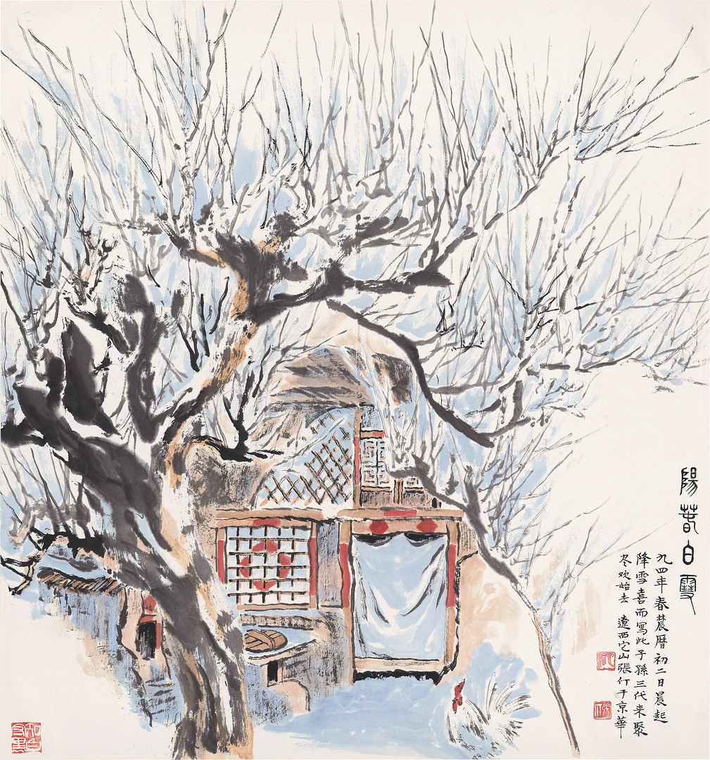 《阳春白雪》焦墨设色山水