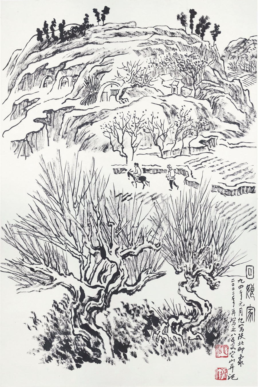 《回娘家》焦墨山水