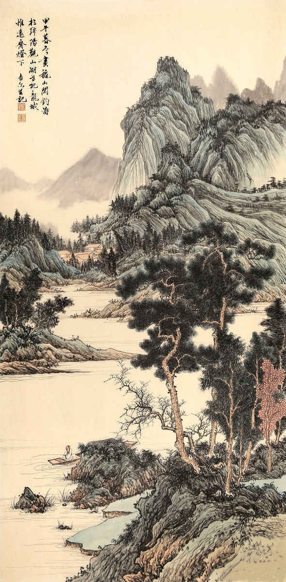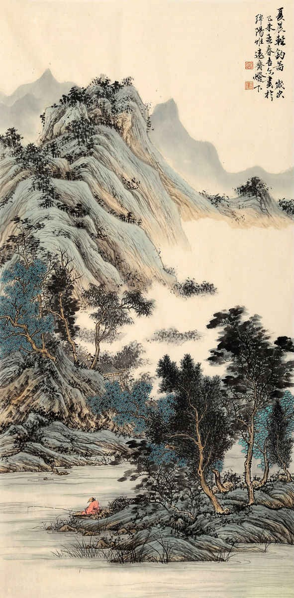 《夏晨轻钓图》