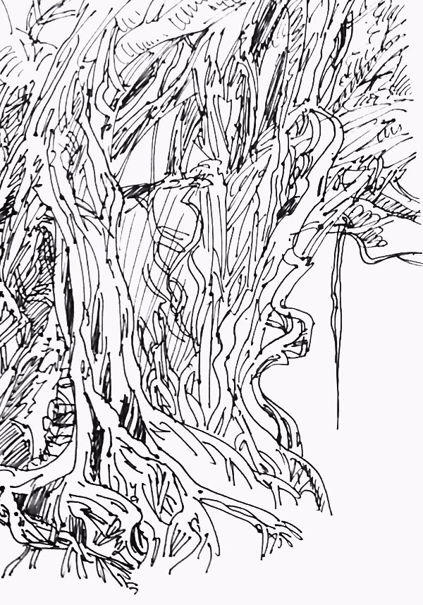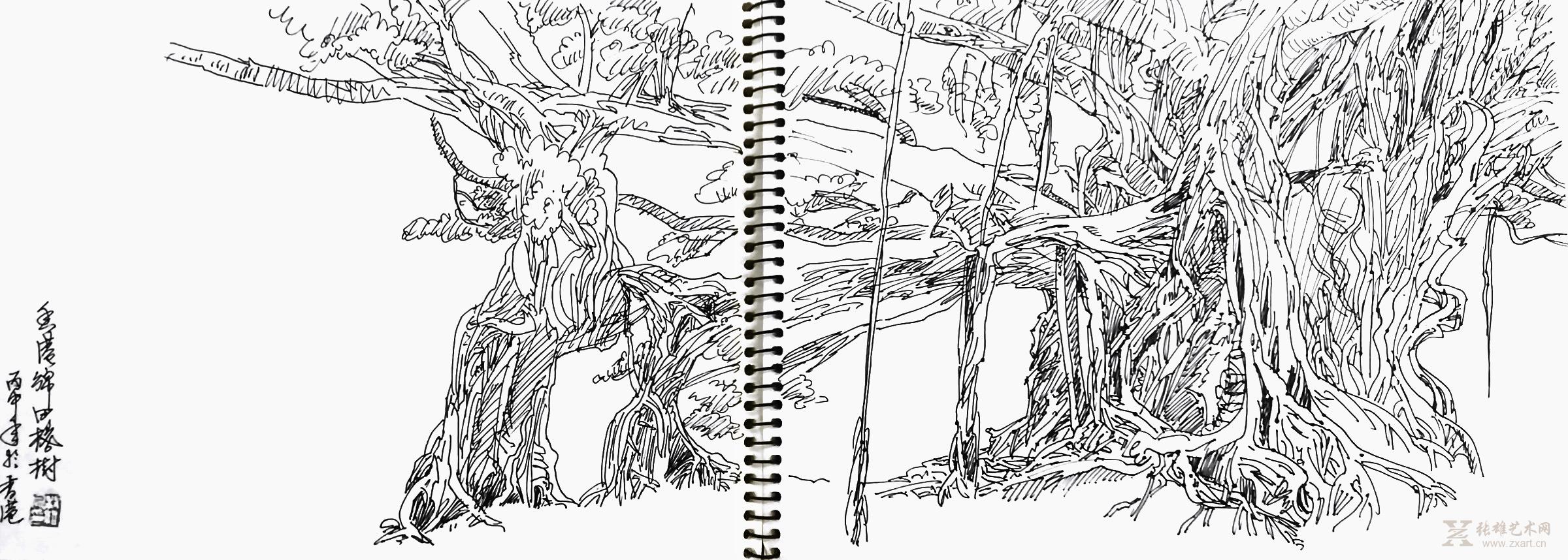 香港锦田乡间大榕树 写生