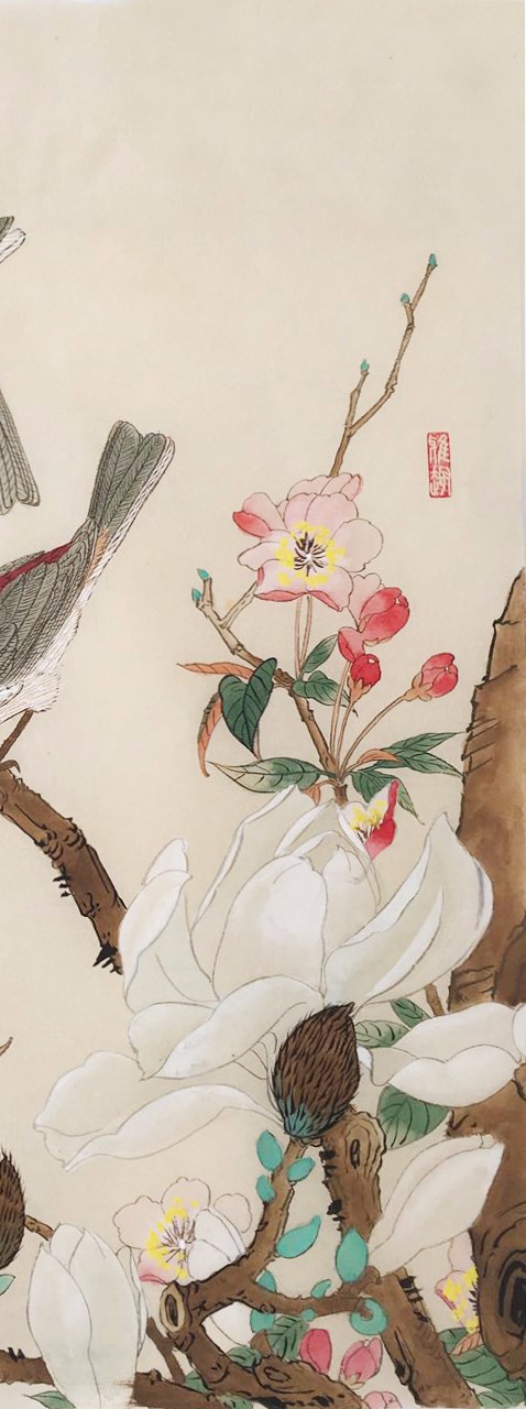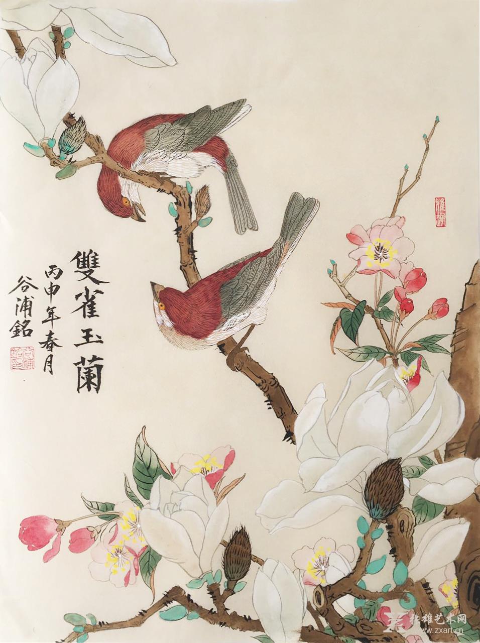 《双雀玉兰》