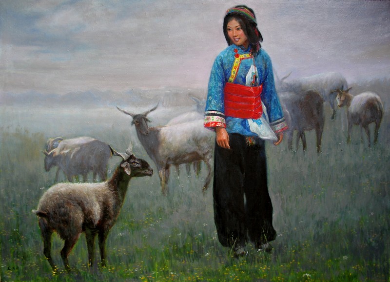女孩和牛