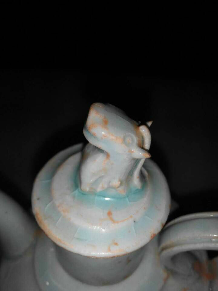宋青釉阖兽壶